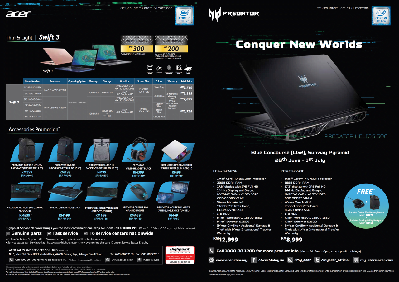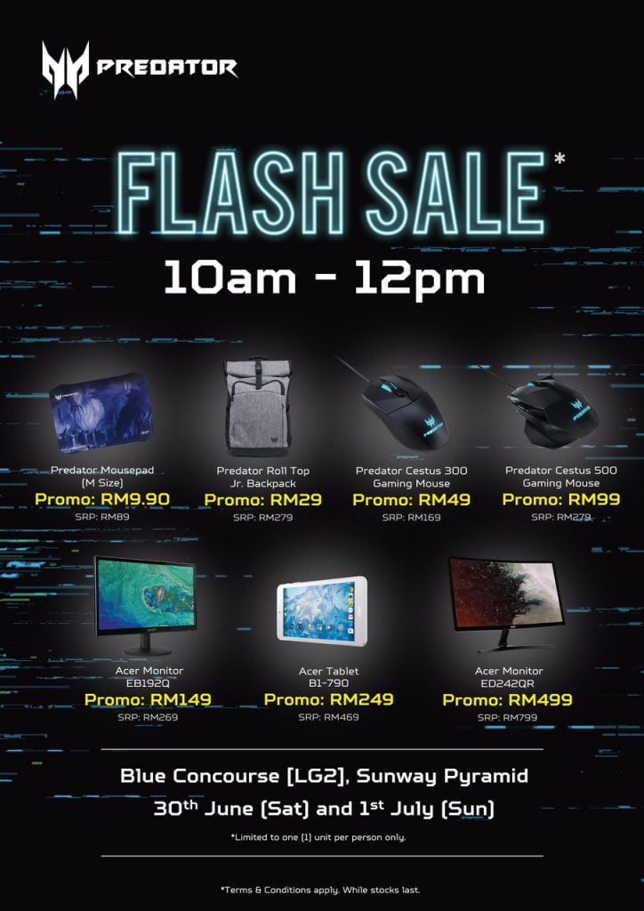 If you are looking for a monitor and a gaming mouse for really cheap prices, Acer Malaysia has a deal for you. There will be a roadshow at the Blue Concourse (LG2), Sunway Pyramid which will also unveil the Acer Predator Helios 500– yes, that will arrive in Malaysia- starting June 28th. There will be a flash sale held on June 30th and July 1st from 10am-12pm.