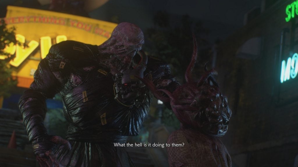 Racoon City is clearly reimagined. But unlike the streets seen in RE 2, the Racoon City we see in RE 3 is a bit more lively. As in, there’s neon signs, plentiful of posters, and a variety of small shops you get to go through. The demo area shows that even with a wide road, you can still make the area feel claustrophobic. Clever placements of debris, and those darn zombies, stays true to its survival horror roots.