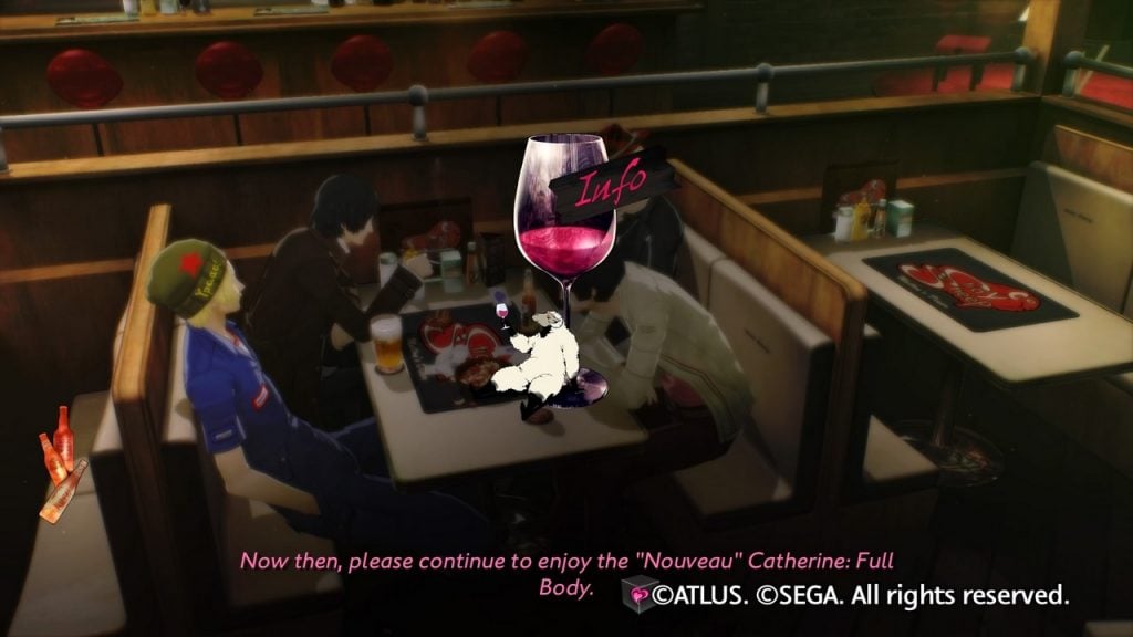 In the down times when he’s not trapped in a hellish nightmare where everyone is a sheep and a baby wants to kill him, Vincent spends his evening in the bar. You get to hang out with your buddies, or share stories with other patrons or reply text messages on your phone.