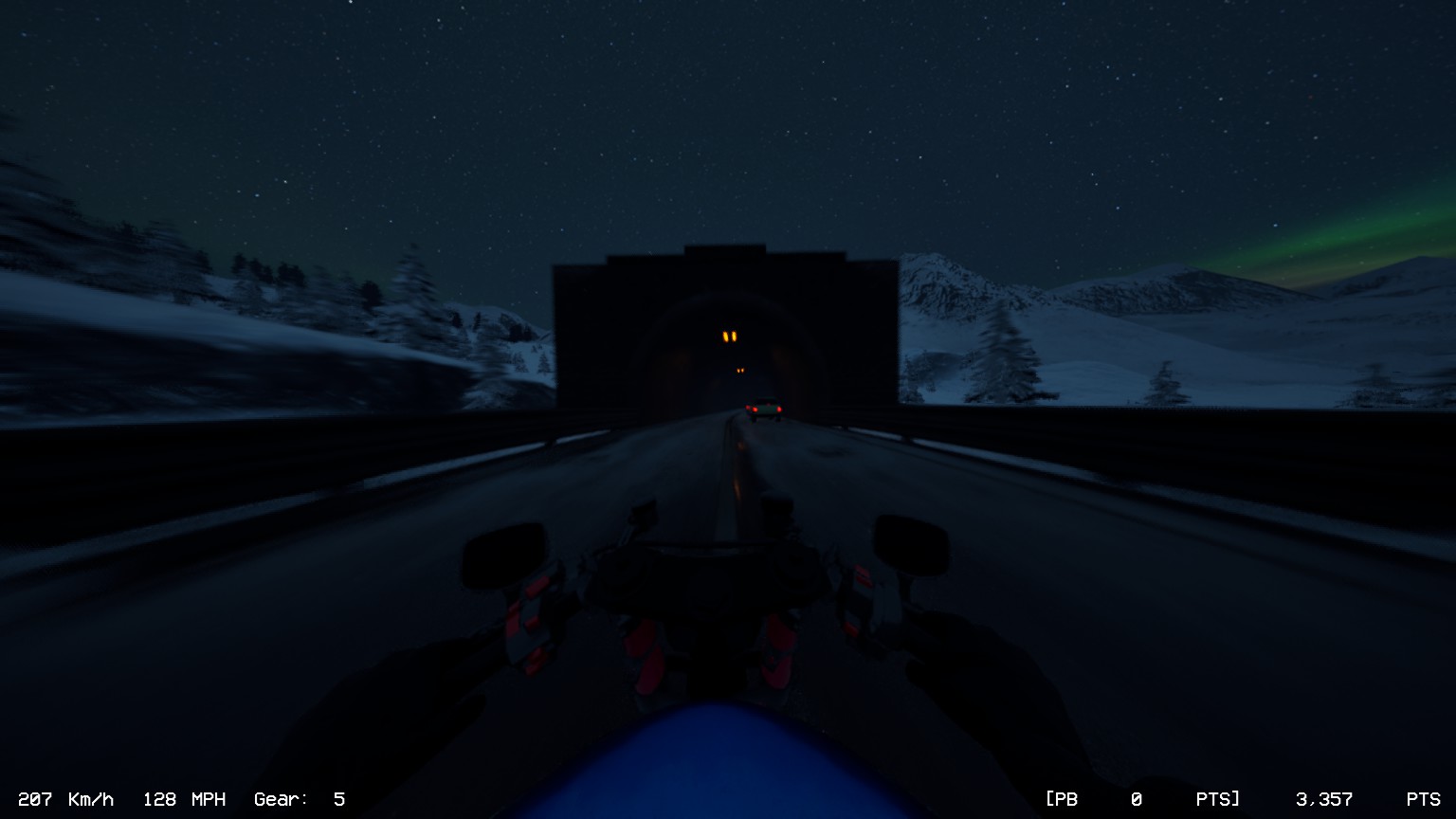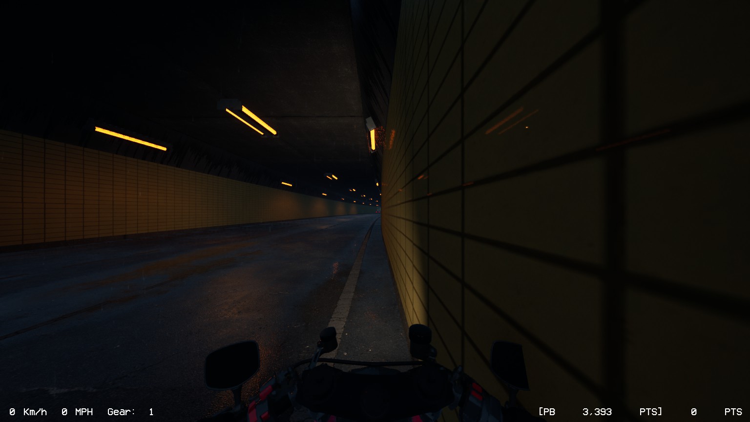 Once you load into one of its three levels, whether it is on Dry condition or Wets, and your character straddles onto a bike, they peel off from the parking bay. It’s only you and the bike as the music gradually builds up, the Drum N Bass soundtrack welcoming you as the speed rises and the traffic is picking up steam, it goes as loud as both the wind and the sound of the engine, for as long as you want it to.