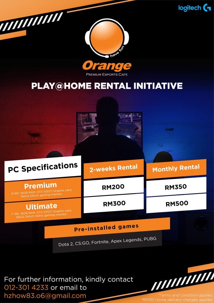 Orange Esports Cafe has a solution. Teaming up with Logitech, they are now offering a rental service for their gaming PC for folks in the Klang Valley. As part of the Play@Home Rental Initiative, you can rent two different gaming PCs- monitor and peripherals included- for 2 weeks or a month. Offer only available during the MCO.