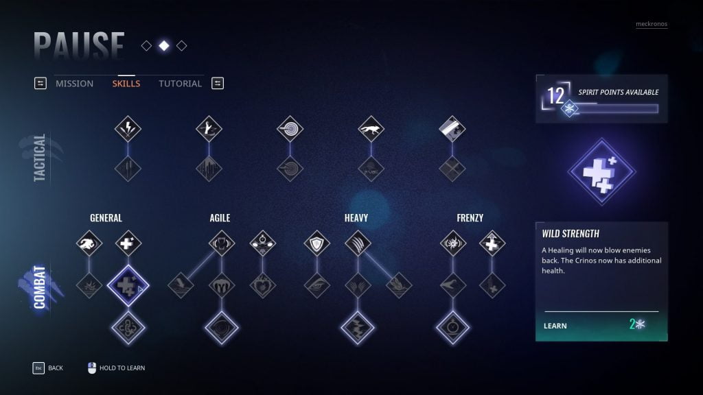 - Combat: General – Wild Strength (2 Skill Points) – Healing blows enemies back, adds more health
