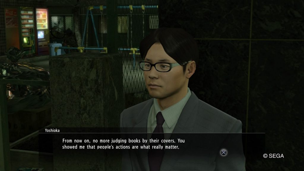 Yakuza’s resident protagonist Kazuma Kiryu may be a well-known in the underworld as one of the most formidable Yakuza, but in truth he is a very good man. Most of the plot points throughout the series has him not be a Yakuza man, solving Yakuza problems and helping out some random people around town.